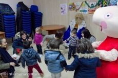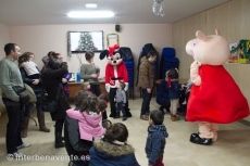 La primera de estas visitas ha tenido lugar en la asociación de vecinos El Pinar, donde un reducido grupo de niños asistieron a la llegada del Paje Real, acompañado de Micky y Peppa Pig, que jugaron con ellos durante más de una hora, al final hubo chocolate para todos los niños.