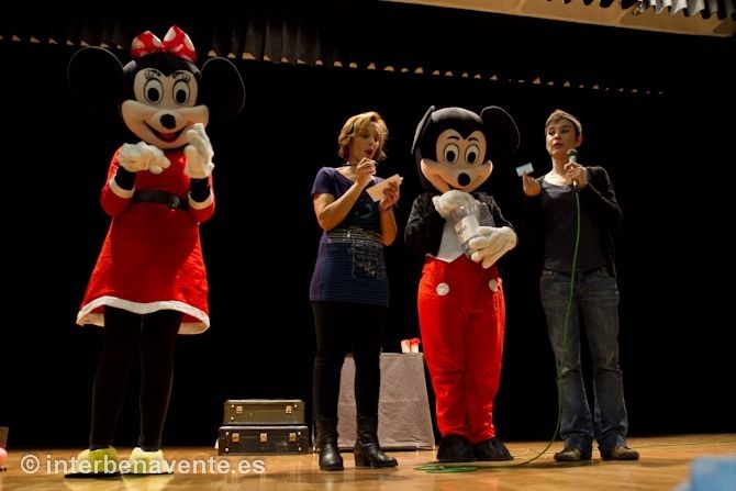 Papas y niños eran recibidos por Minnie y Mickey, que en más de una ocasión compartirían la alegría de los mas pequeños. La tarde comenzaba con una entrañable actuación de cuentacuentos, de una artista que por primera vez se presentaba en la ciudad. Katua Teatro logro transportar al maravilloso mundo de los cuentos al público familiar que esa tarde se daba cita en el salón de actos del colegio San Vicente de Paúl.