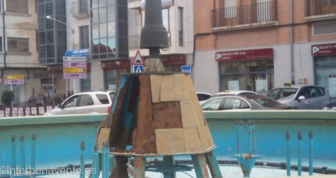 El estado actual de la farola situada en medio de la fuente presentaba un estado de degradación.