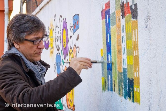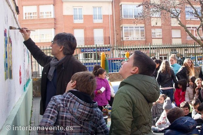 Los alumnos se han reunido en el aula por ciclos y han aprendido algunos sencillos trucos y técnicas de dibujo. Ello ha despertado su curiosidad e interés, que han demostrado haciéndole innumerables preguntas relacionadas con su trabajo y con su vida. Además durante una parte de la sesión ha estado en el patio con los alumnos más mayores, dejando una pequeña ilustración en el muro lateral del centro, donde ya anteriormente habían pintado otros ilustradores.