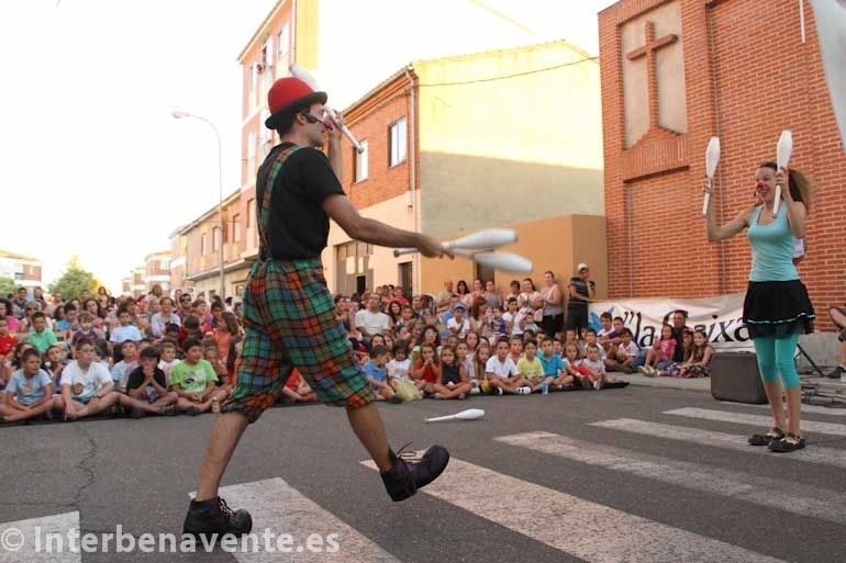 Las peripecias de esta pareja circense fue seguida por numerosos niños y mayores que participaron activamente en el espectáculo