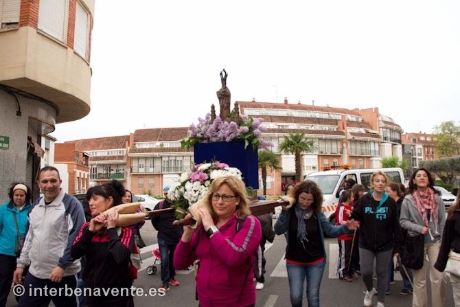 Esta peregrinación se realizó siempre a dicho santuario, hasta que se tomó la decisión de celebrar la fiesta de otra forma y en la misma ciudad. Han hecho bien los de la cofradía en recuperar este acto respetando así la tradición romera y peregrina, cargada de simbolismo y de recuerdos para todos los benaventanos. Y es que, además, se celebra en primavera, en el mes de mayo, y todo el recorrido transcurre por un paraje difícil de olvidar para quien lo haya hecho: campos verdes sembrados, caminos con arcenes cargados flores de los más variados colores, en muchos momentos a la sombra de árboles, sobre todo chopos, y siempre por la vega del Esla, y no lejos del mismo río. Además los pueblos por los que se pasa también tienen algo que ofrecer a los peregrinos, bien se trate de las iglesias o incluso de casas, algunas todavía de adobe o tapial en las que viven.