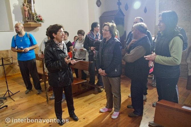 Los peregrinos salen a las 8 horas de la plaza de Sata María. A las afueras de la ciudad cogen el antiguo camino de peregrinación al Santuario, que lleva a San Cristóbal de Entreviñas. En la iglesia de este pueblo fueron recibidos por la alcaldesa, Leonor  González que les enseña la iglesia, su artesonado y el retablo con las imágenes más destacadas, entre ellas san Cristóbal. Antes de continuar viaje cantan la Salve a la Virgen de la Trinidad. A la salida de la iglesia toman un pequeño refrigerio: pastas, agua para continuar el camino.