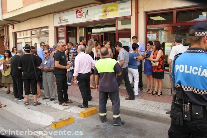 Las puertas de la oficina del INEM fue el lugar de la concentración de los funcionarios y personal laboral.