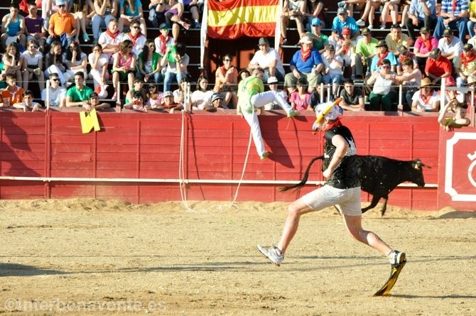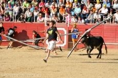En estos retos, se presentaba, como es habitual cuatro vaquillas que no se lo pusieron fácil a los participantes. El ingenio en las nuevas pruebas no ha defraudado, la piscina de agua en el centro de la plaza que no falte y algún chapuzón de las reses, no faltó, para aliviar el calor de la plaza.