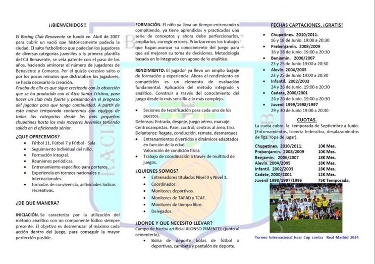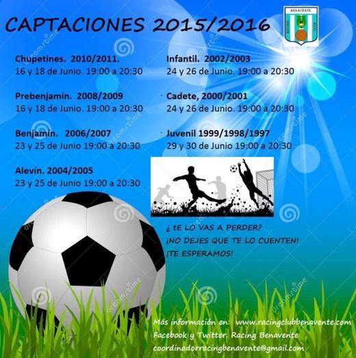 Para más información pueden ver la página de Facebook Racing Benavente o en la web www.racingclubbenavente.com.