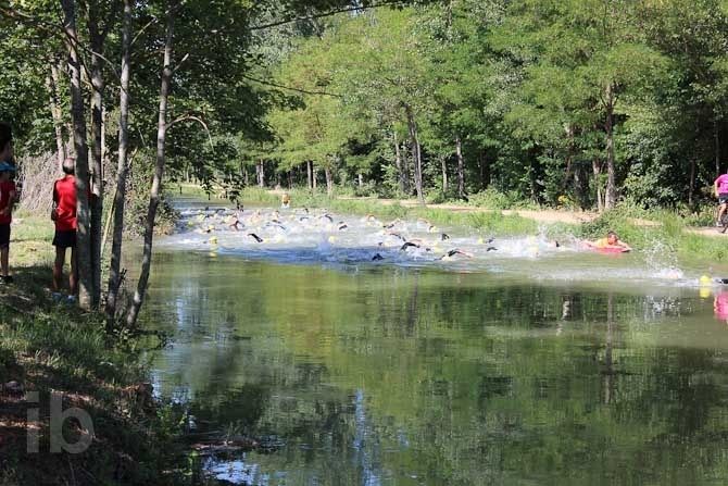La prueba daba comienzo en un tramo del Canal de Castilla perteneciente a la localidad Palentina de Dueñas ,obra de ingeniería que data de los siglos XVIII y XIX,cuyo objetivo era servir de vía fluvial de transporte de cereales producidos en tierras castellanas y que hoy sería el escenario perfecto para una competición donde 105 triatletas medirían sus fuerzas en torno a las 5:30 de la tarde ,con una temperatura de casi 38 grados, recorriendo 750 metros a nado para seguir con 24 km en btt y seguidamente 5 km más corriendo.