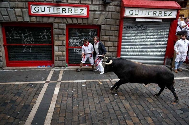 El toro Fugado, de la Ganadería Cebada Gago, protagonizó una carrera muy peligrosa por las calles de Pamplona el lunes 9 de Julio de 2012, dejando tres heridos por asta.