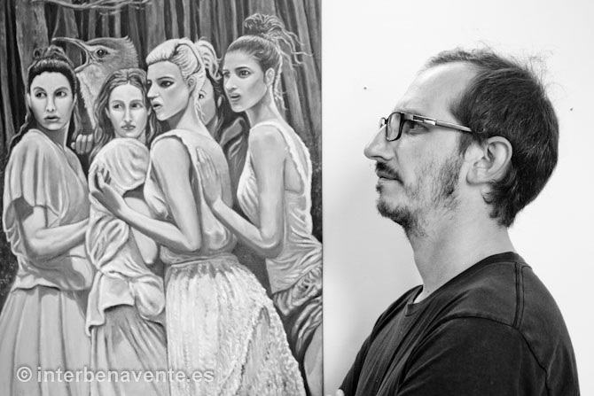 | Antonio Feliz, Parsec, y el cuadro Las Vestales. Foto:Interbenavente. |