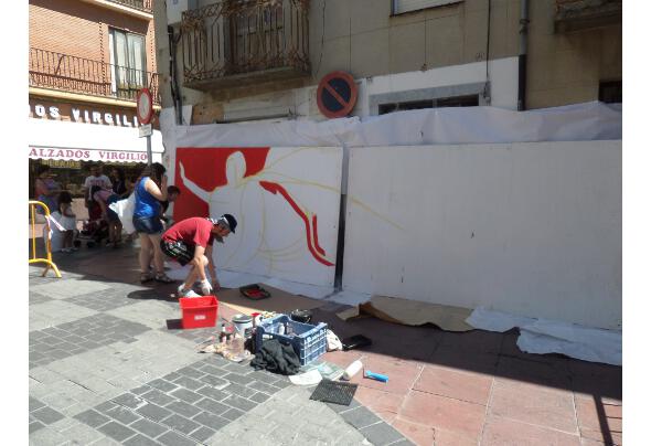 Pero en el Festivalley de Benavente Parcec quiso hacer una demostración en la calle pintando sobre dos paneles de madera dos temas distintos, a la vista de todos y para todos, en la Plaza Juan Carlos I.