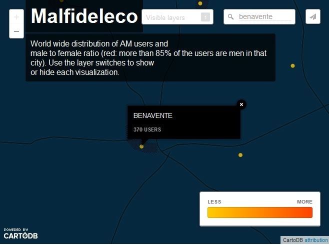 En Benavente concretamente situa 370 usuarios de los cuales el 92,16% son hombres, la única localidad cercana a nuestra localidad que figura en este mapa es Villanueva del Campo en la que ubica 17 usuarios.