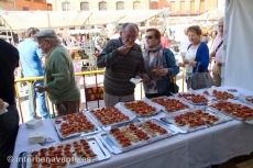 Durante las jornadas precedentes, el grupo de folk Fole Feroz se encargaron de ambientar con su música tradicional las calles del centro y la Plaza Mayor, ayer sábado la tradicional degustación de pimientos asados ofrecida por el Parador de Turismo congregó a cientos de personas que saborearon este bocado exquisito y también el pastel de cebolla, otro de los platos tradicionales ofrecidos por el Parador.