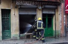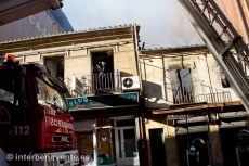 Alrededor de las seis de la tarde continuaban las labores de extinción, la arquitecta municipal revisaba desde la escalera de los bomberos el estado del edificio del número 27, que prácticamente se daba por ruina total una vez que el techo de la primera planta se desmoronó. El único establecimiento, abierto al público, que ha resultado afectado ha sido una peluquería.