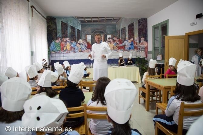 Oscar y Pedro Mario, los chefs y propietarios del Restaurante El Ermitaño, han sido los encargados, como cada año de trasladar estas curiosidades gustativas a los alumnos de ambos centros educativos benaventanos.