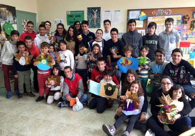 Manualidades: elaboración de diversos materiales en la que han participado los benjamines de infantil y primaria con la colaboración de grupos de estudiantes de secundaria.