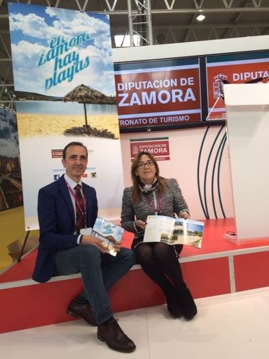 Mayte Martín Pozo, presidenta de la Diputación Provincial de Zamora, y José Luis Prieto Calderón, diputado de Turismo, han presentado esta mañana en Intur el folleto editado por el Patronato de Turismo dentro de la campaña “En Zamora nos mojamos”.