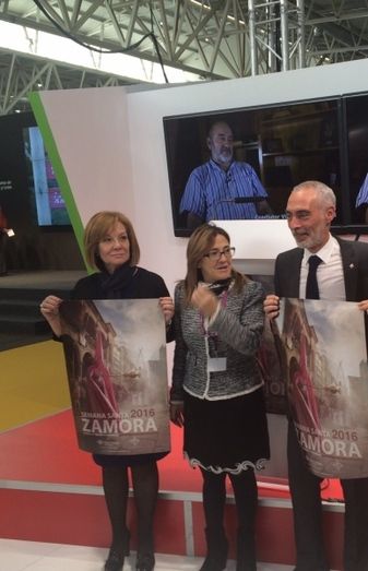 El stand del Patronato de Turismo ha acogido la presentación del Centro de Interpretación del Barro de Pereruela de Sayago, enmarcado dentro de la Reserva Transfronteriza Meseta Ibérica, y del cartel de la Semana Santa de Zamora 2016.
