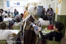 Alrededor de las once de la mañana, todos los niños y profesores bajaron al patio para la celebración del fin de año y las doce uvas, en este caso eran doce Lacasitos. Los Reyes Magos se asomaron a las ventanas del colegio para saludar a los niños y a muchos padres que se acercaron hasta allí para ver esta divertida celebración.