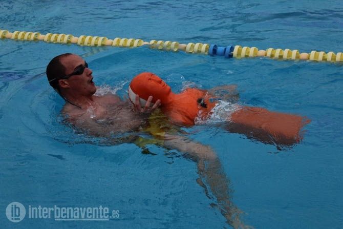 La piscina climatizada en Benavente ha sido el escenario de la prueba combinada a la que han tenido que hacer frente los socorristas, con título ya adquirido, para renovar sus conociemiento. Una prueba que se realiza cada dos años.