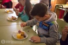 Zumo, bizcocho, jamón serrano, piruleta de fresa natural cubierta con chocolate, yogurt, miel… un amplio abanico de alimentos con el que los alumnos de San Isidro se chuparon los dedos.