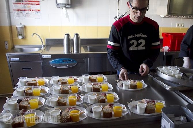 Leche, zumo natural de naranja, bizcocho casero, una tostada de pan con tomate y jamón y dos piruletas de fruta, una recubierta de chocolate y otra con cereales ha sido la propuesta del Hotel Villa de Benavente para los pequeños comensales del Colegio Buenos Aires.