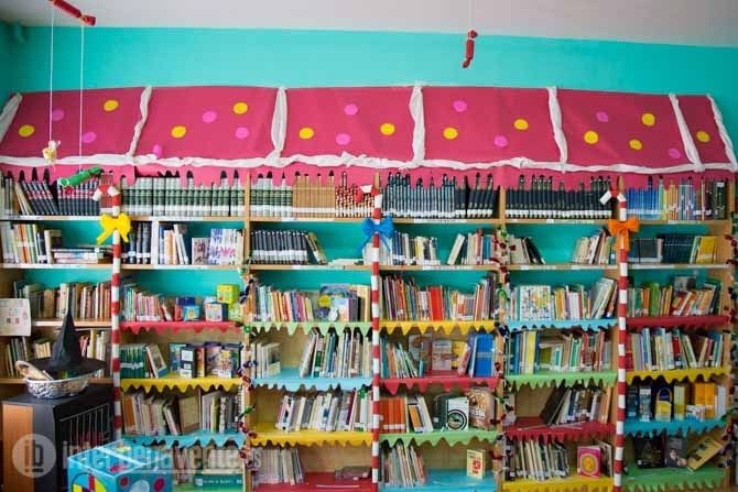El Colegio Fernando II de Benavente es uno de los centros participantes con la actividad “Lugares del libro”. Con La Casita de Chocolate por temática, el colegio ha decorado su biblioteca y el pasillo de caramelos y bastones de caramelo.