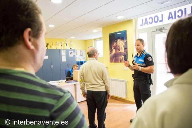 Un total de 12 pacientes de la Fundación Intrás de Benavente acompañados de un monitor han vivido una mañana especial visitando las instalaciones del Cuartel de la Policía Local de Benavente, donde el oficial y responsable del Departamento de Educación de la Policía Local de Benavente, Miguel Ángel Blanco, había preparado una clase que se dividía en una primera parte teórica, en la que, con ayuda de un proyector, recordaba las principales características y normas viales, al igual que el comportamiento que tanto conductores como peatones deben tener para cumplir con la normativa vial y evitar posibles accidentes.