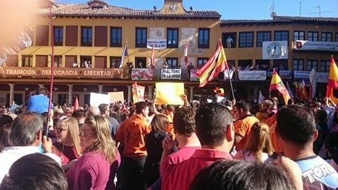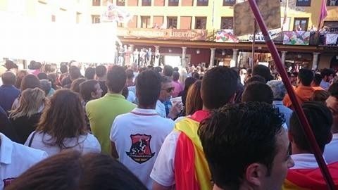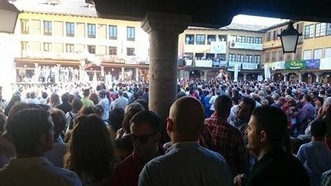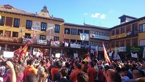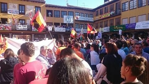 Unas 4.000 personas según la Plataforma Ciudadana de Tordesillas que ha convocado la concentración se reunieron en la Plaza Mayor de Tordesillas para pedir el sí al Toro de la Vega