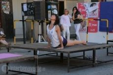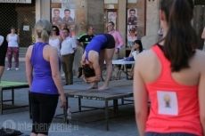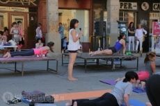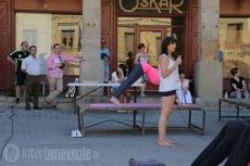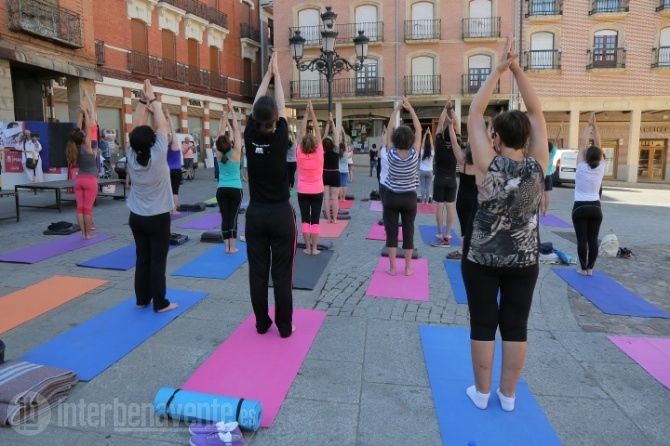 El acto, previsto para las 18:00 horas comenzó a las 18:30. El centro de la Plaza Mayor de Benavente se convirtió en un improvisado gimnasio donde las esterillas antideslizantes cubrían parte del suelo. Una treintena de personas, con sus mayas y descalzos, escuchaban como el Concejal de Bienestar Social, Antonio Vega, explicaba a los asistentes las ventajas de esta actividad.