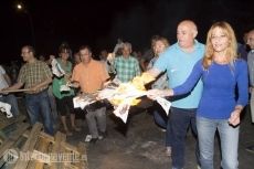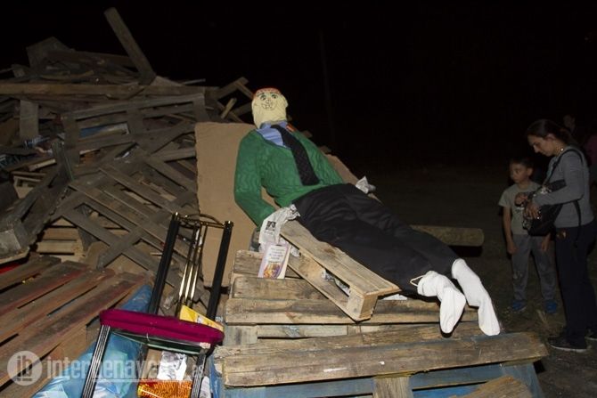 El alcalde y varios concejales de la corporación municipal se encargaron de poner las primeras llamas a la hoguera, formada por una gran montaña de palets y muebles viejos que hicieron una gran llama.