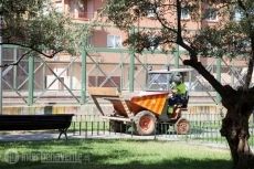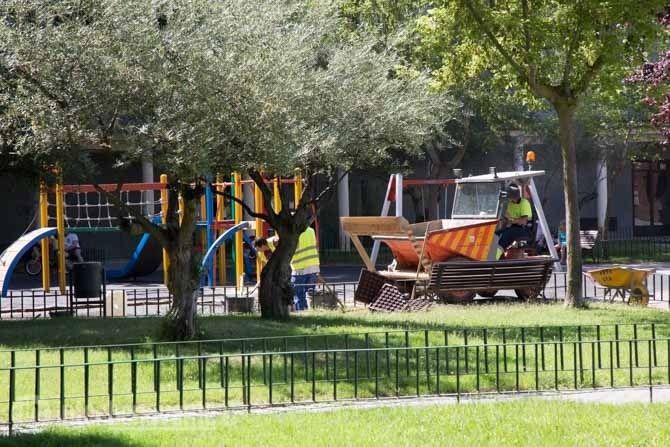 Esta semana han comenzado con el parque. Esta mañana los operarios municipales tapaban el arenero con hormigón y tienen previsto en estos días sustituir todo el suelo de caucho y colocar en el lugar del arenero una pieza de mobiliario infantil con una pieza que ya tenía en Ayuntamiento en su poder.