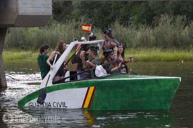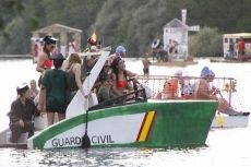 Abría el desfile de barcos una patrullera de la Guardia Civil, comandada por un grupo de chicas con tricornio y bañador, seguido de un parque infantil con unos bebés un tanto grandullones. El casino, las conejitas de Play Boy, las lavanderas, un grupo de hippies con su furgoneta y todo, Don Quijote y Sancho con Dulcinea y Cervantes, el Partenon romano y finalizando una iglesia con todos sus fieles, que cantaron hasta el típico ramo.