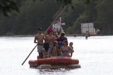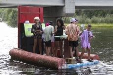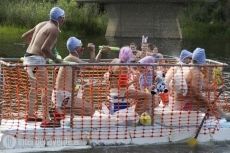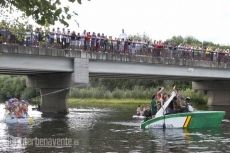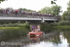 Numeroso público se congregó ayer sobre las siete de la tarde en el puente de Santa Croya de Tera para ver la llegada de los ocho barcos locos participantes este año.
