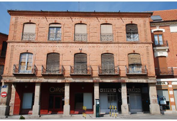 | Casa Lesmes, uno de los edificios de ladrillo en la plaza. |
