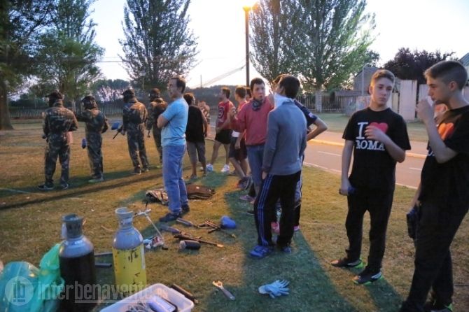 Una treintena de jóvenes se acercaron esta tarde a las inmediaciones del Centro de Interpretación de los Ríos (CIR) para probar su puntería y pasar un buen rato con sus amigos. Los organizadores habían vallado un área de Las Pavas y colocado trincheras para obtener un improvisado campo de batalla. Pronto comenzó a anochecer, lo que hizo que la cosa se pusiera más interesante.
