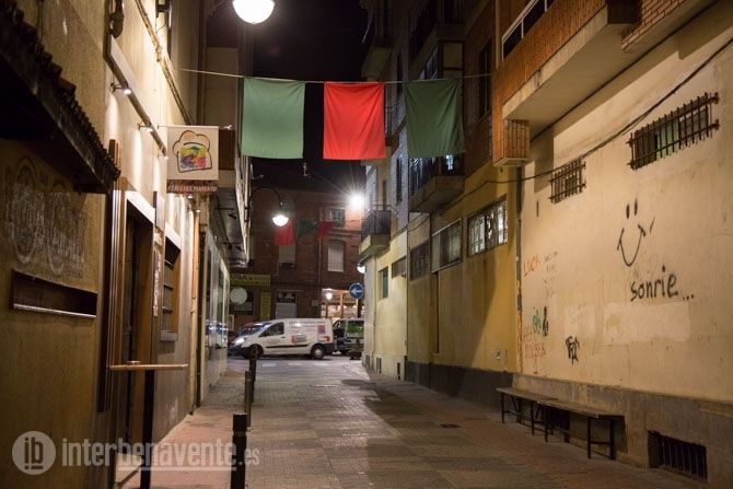 Esta tarde algunos comercios y negocios hosteleros comenzaban a poner en sus fachadas las banderolas diseñadas para fomentar tanto el comercio como la hostelería en Benavente, ambos con la extensión de la Feria del Pimiento debajo.