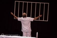 Con una cama de hospital vieja y una valla blanca a modo de ventana, contrastando ambas con el negro del resto del escenario, los actores metieron al espectador en su curioso diálogo.