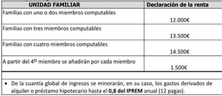 Entre los requisitos para ser beneficiario y acreditación debe estar empadronados en Benavente y matriculados en un centro público o privado concertado cursando los estudios de Educación Infantil, además no deben superar los tramos de valores de la renta de la unidad familiar (padre y madre en los importes siguientes.