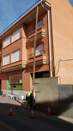 Retiran el poste de luz de madera de la Calle Lagares