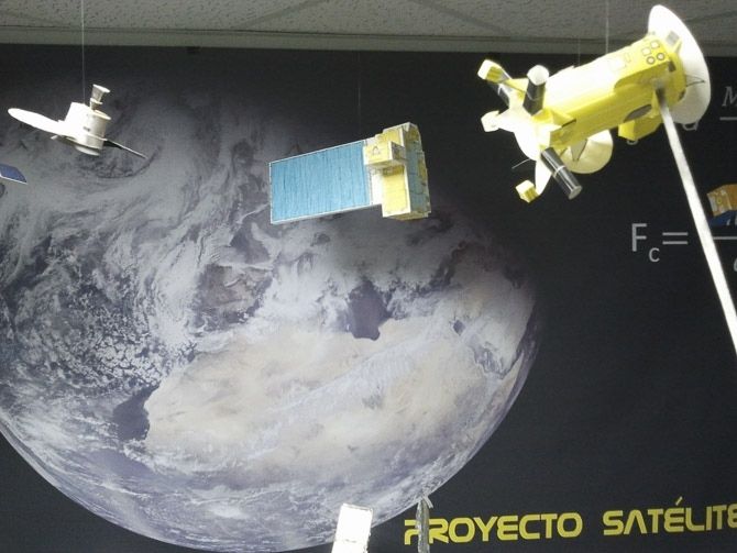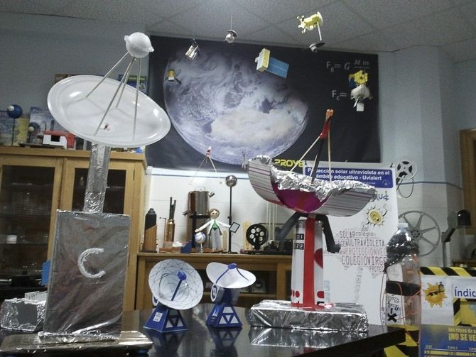 El lema de este año, motivó a los profesores de ciencias a realizar una serie de actividades centradas en los satélites artificiales. Desde el Departamento de Ciencias se acometió la mejora del sistema de recepción de las imagenes que envían los satelites meteorológicos NOAA 15, 18 y 19, mejorando las antenas, el receptor y actualizando el sofware informático que decodifica las señales.