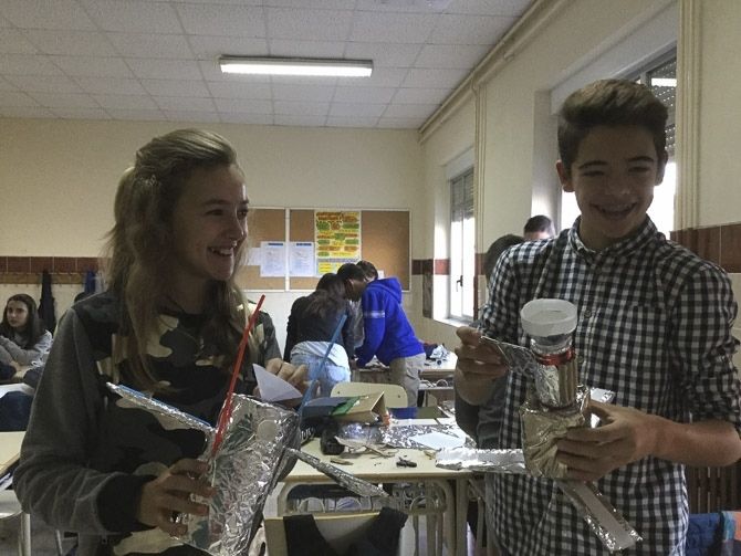 Los profesores de los distintos niveles eligieron activades adecuadas al lema: visita al planetario digital, en la que se mostraron los satelites artifiales que orbitan nuestro planeta, diseño de maquetas de satélites y radiotelescopios.