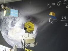 Ambientación de pasillos y entornos escolares que recordaron como los avances en tecnologia espacial condicionan nuestra vida, finalizando con la proyección de documentales y películas ambientadas en la exploración de Marte.