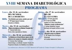 Este año son cinco las charlas que se ofrecerán en el salón Benavente del Parador de Turismo a partir de las 20 horas y en ellas se dan cita una educadora en diabetes, un técnico especialista en nuevos aparatos de control glucémico, un endocrino, un nefrólogo y un cardiólogo que abordarán distintas temáticas relacionadas con esta enfermedad, entre las que se incluyen complicaciones asociadas a la diabetes, así como nuevas tecnologías que ya están en el mercado.