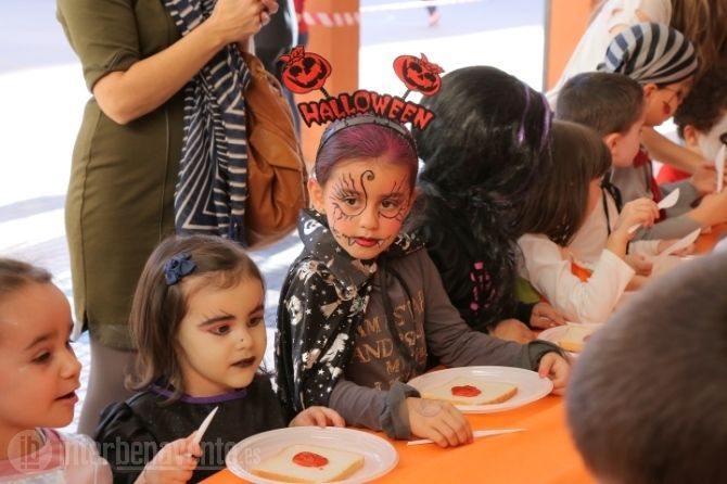 Los pequeños disfrazados de conde drácula, brujas, la muerte con su guadaña y alguna princesa elaboraron su propia merienda antes de pasar al taller de pintura.
