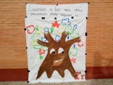 Los alumnos también expusieron sus trabajos de convivencia escolar, donde pudimos ver frases y murales adornando el patio.