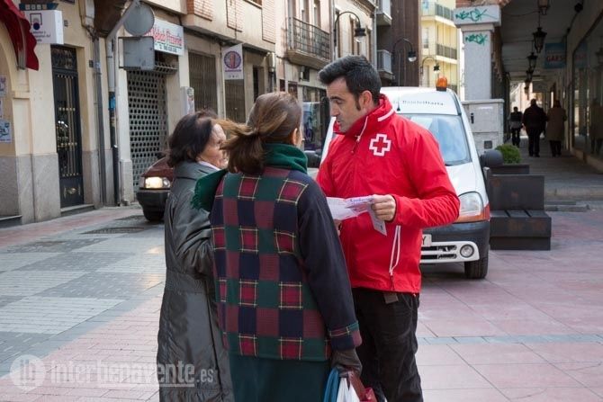 Un grupo de voluntarios de Cruz Roja en Benavente han salido a la Plaza de Santa María durante la mañana del viernes con motivo de la conmemoración este 25 de noviembre del Día Internacional contra la Violencia de la Mujer.