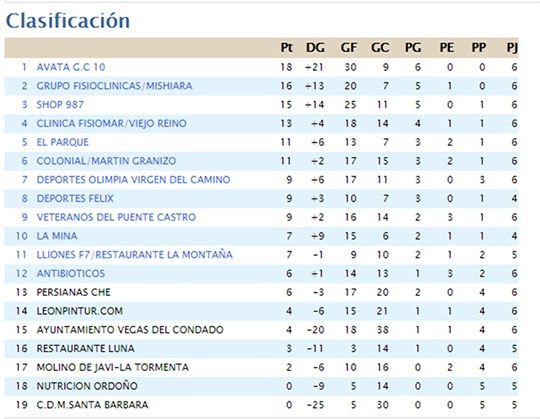 Clasificación Jornada 6