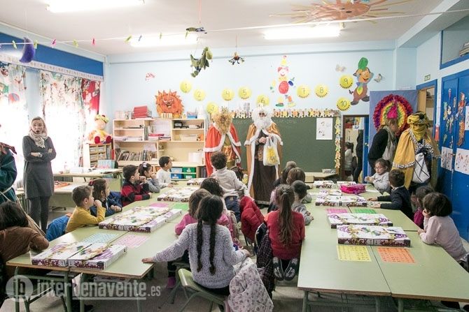 Desde el mediodía, los Reyes Magos recorrieron todas las aulas del centro, recogiendo las cartas y entregando a todos los niños un regalo sorpresa, una bolsita con doce Lacasitos y un gorro plateado para celebrar anticipadamente la fiesta de fin de año.