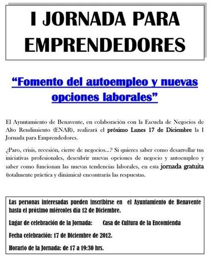 Las inscripciones deben enviarse rellenando el formulario word que os adjuntamos y enviándolo a jornadasemprendedores@benavente.es