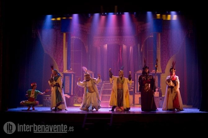 Esta tarde niños y adultos han podido disfrutar en el Reina ´Sofía de Benavente de la mágica historia de Aladin, contada en forma de musical.